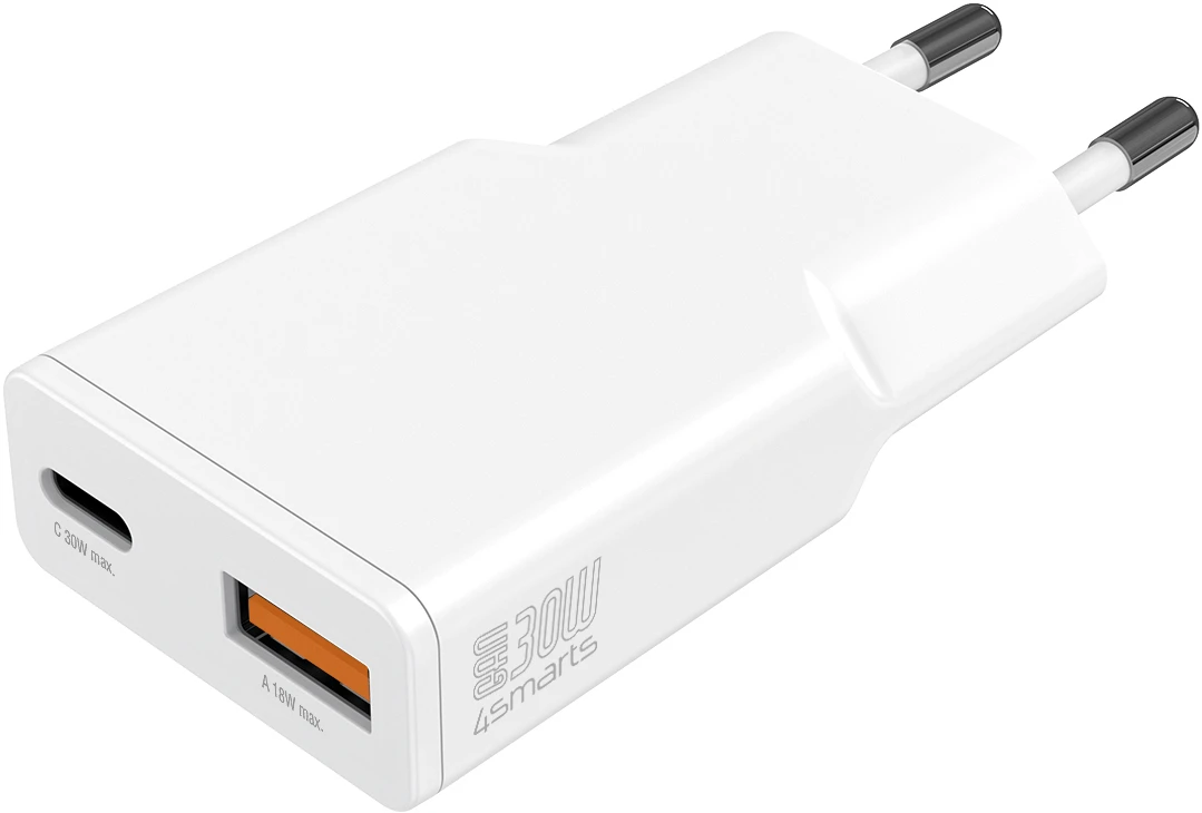 4Smarts Netzladegerät PDPlug Slim Duos 30W GaN 1C+1A Weiß