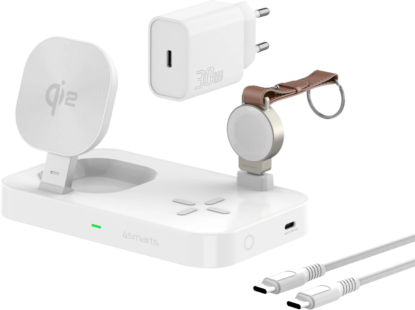 4Smarts Qi2 Ladestation Trident mit Charger für Apple Watch Weiß